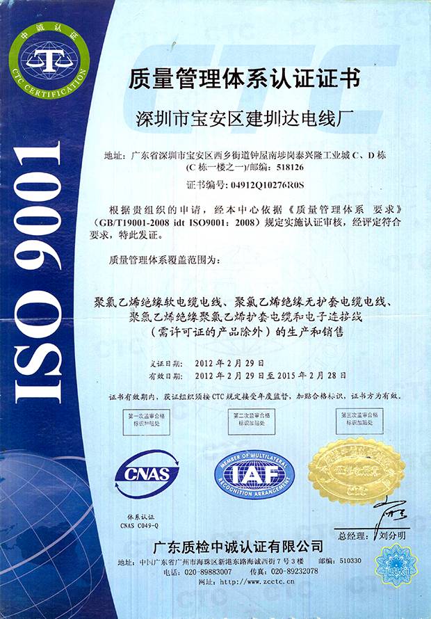 建圳達電纜立足于中國深圳,擁有技術精湛的隊伍、現(xiàn)代化生產(chǎn)設備、精密的檢測儀器,從原材料、生產(chǎn)、成品嚴格按照國家標準檢測,通過多個認證。
